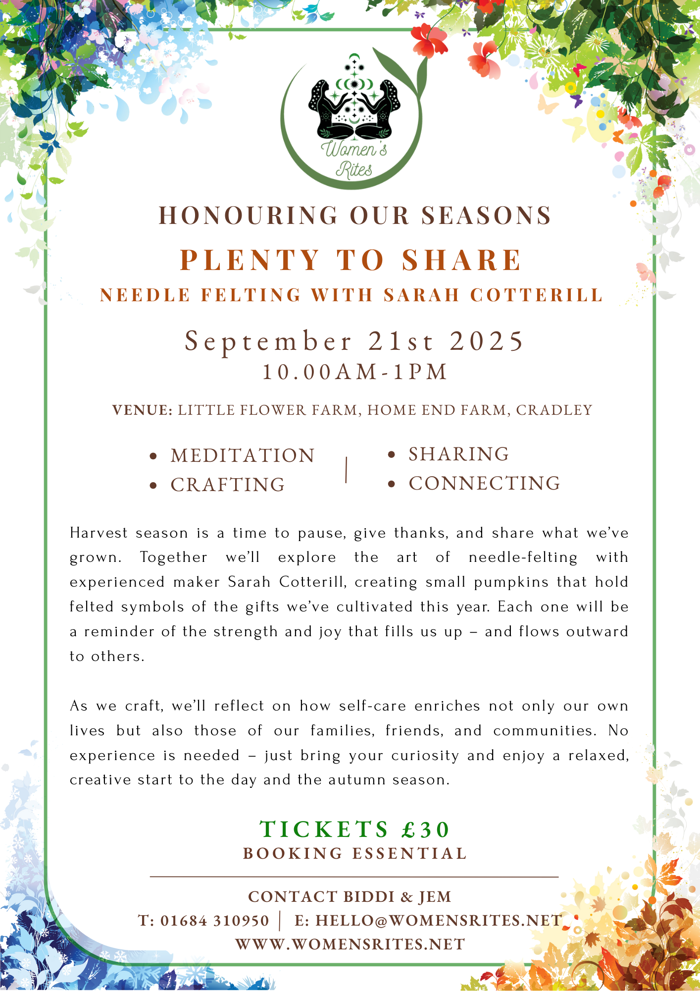 Guided by Anna Mitchell, from Creative Clay, you’ll shape a small clay doorway and imbue and decorate it with affirmations and natural textures. These symbolic gateways into your Soul Garden will remind you that you are its guardian, able to keep it safe and cosy through the winter’s fallow time, a season of rest and quiet tending, as you wait to nurture new and continued growth in the year ahead.